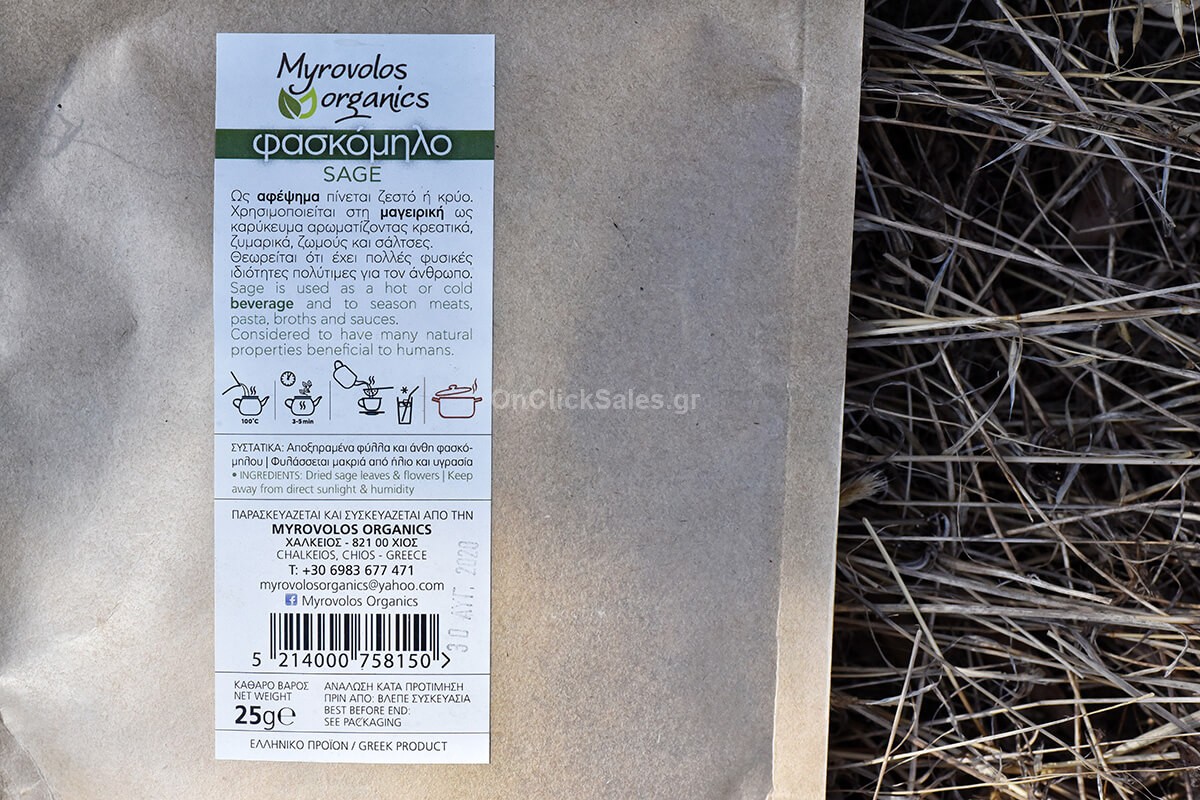 Βότανα Βιολογικό Φασκόμηλο Myrovolos Organics 25γρ
