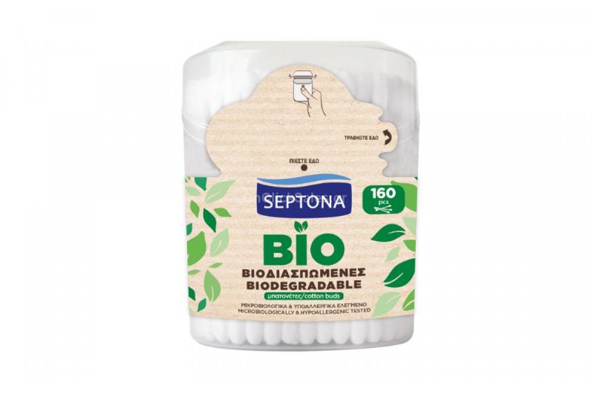 Οι χάρτινες, βιοδιασπώμενες μπατονέτες της SEPTONA, χάρη στις άκρες τους από 100% βαμβάκι, καθαρίζουν απαλά και προσφέρουν φυσική φροντίδα σε όλη την οικογένεια. Χρησιμοποιώντας τις βιοδιασπώμενες μπατονέτες SEPTONA μειώνετε το προσωπικό σας περιβαλλοντικό αποτύπωμα.